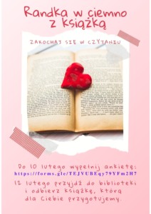 12 lutego z okazji walentynek biblioteka szkolna zorganizowała Randkę w ciemno z książką. Chętni uczniowie oraz nauczyciele, po wcześniejszym uzupełnieniu profilu czytelnika, otrzymali specjalnie dobrane do ich zainteresowań książki.