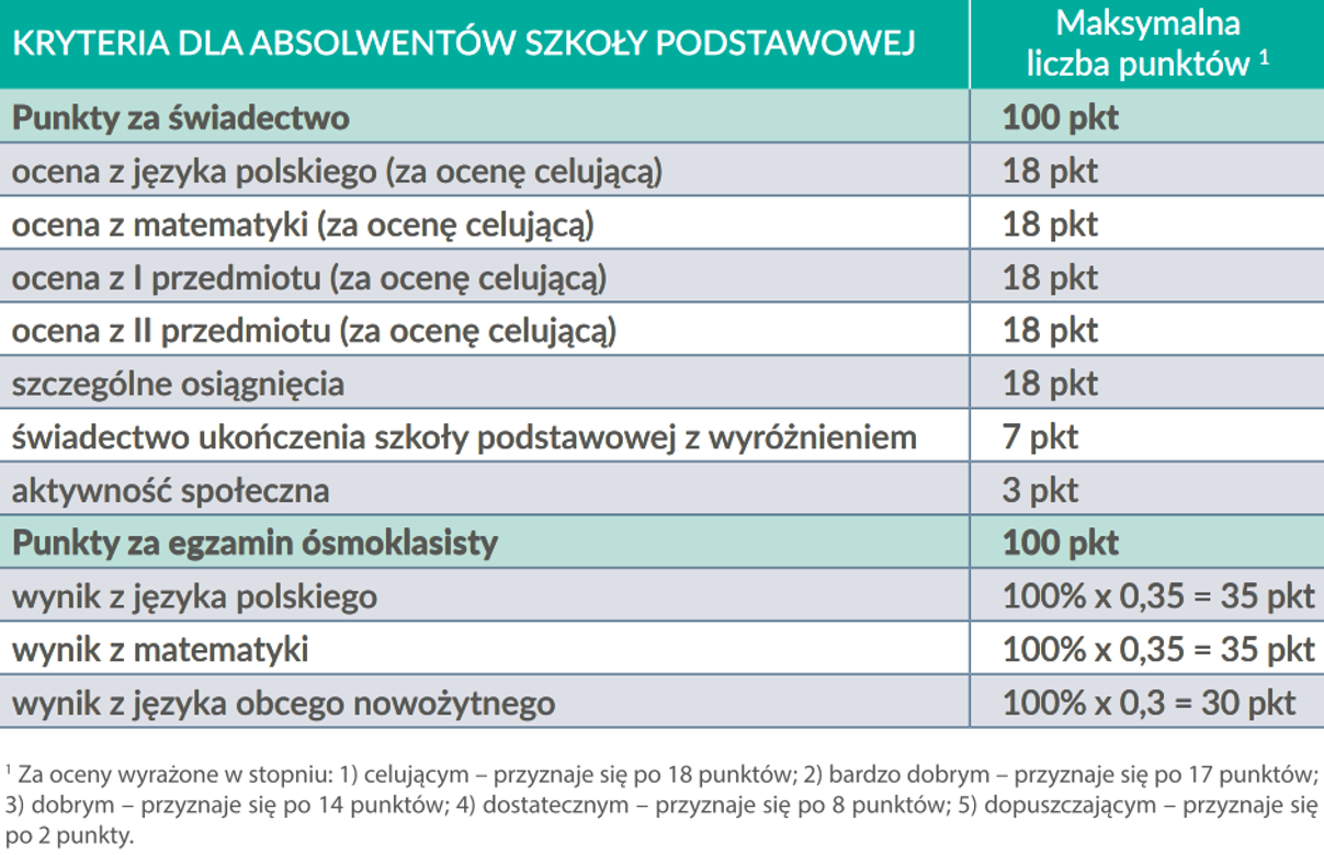 KRYTERIA REKRUTACJI: