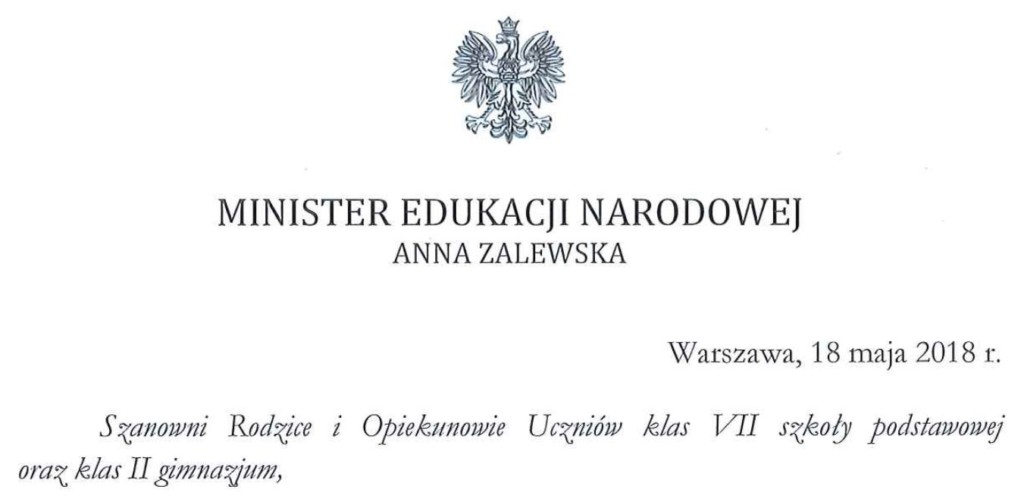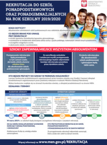 W załączeniu przedstawiamy informację Ministra Edukacji Narodowej, pani Anny Zalewskiej, dla kandydatów do publicznych szkół ponadpodstawowych i ponadgimnazjalnych w postępowaniu rekrutacyjnym na rok szkolny 2019/2020.