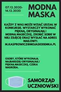 - Termin: prace w formie elektronicznej należy przesłać do 10 grudnia 2020 roku wyłącznie na adres: info@mojasiodemka.pl w temacie wpisując „Zimowy konkurs”