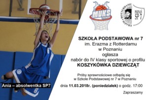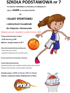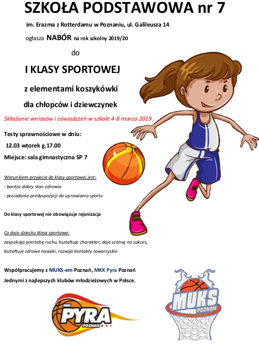 Nasza szkoła ogłasza nabór do pierwszej klasy sportowej z elementami koszykówki dla chłopców i dziewczynek.