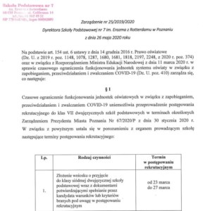 Zarządzenie Dyrektora SP7 w sprawie terminów rekrutacji do klas 7 dwujęzycznych
