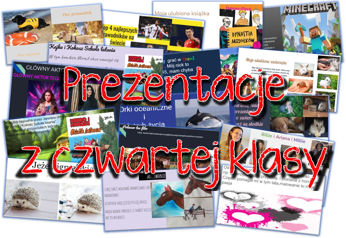 Podczas ostatnich kilku lekcji uczniowie klas czwartych poznawali zasady tworzenia prezentacji multimedialnych. W efekcie powstały wspaniałe prezentacje dotyczące ich własnych zainteresowań.