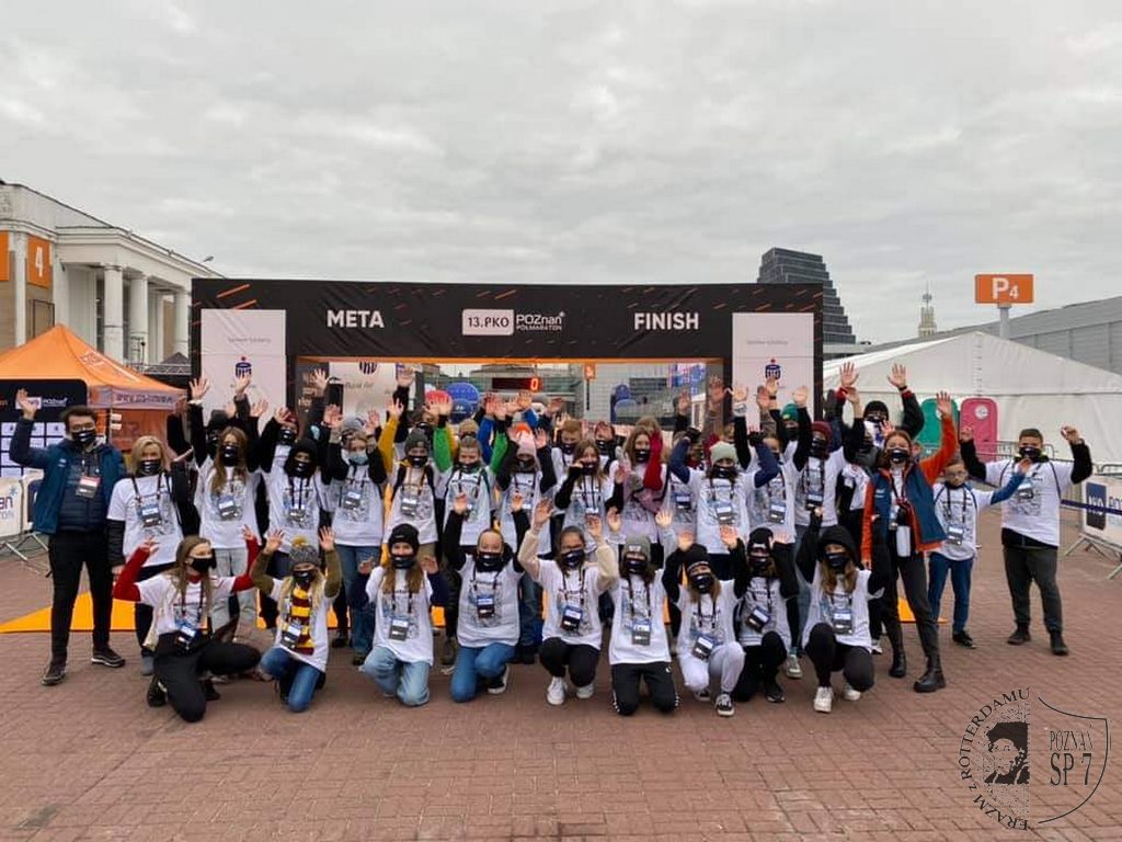 W dniu 3 kwietnia 2022 roku grupa 35 Wolontariuszy Siódemki z klas siódmych i ósmych dzielnie pracowała podczas organizacji 14. PKO Poznań Półmaratonu. Mimo chłodu i wczesnej pory zbiórki wszyscy uczniowie spisali się na medal: przygotowali punkt żywieniowy, wspierali oraz bardzo głośno dopingowali biegaczy. Pracowali sumiennie, a przede wszystkim z wielkim sercem i zaangażowaniem.