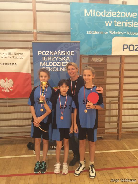 Nasze reprezentantki Mia Dymek (3c), Gabriela Krzymieniecka i Zofia Przybylska (6d) odniosły wielki sukces zdobywając brązowy medal na Mistrzostwach Poznania. Dziewczęta drużynowo rozegrały dwa mecze: półfinał SP 61 – SP 7 3:1 oraz mecz o 3 m-ce SP 85 – SP 7 1:3. Podczas zawodów towarzyszyły niesamowite emocje!