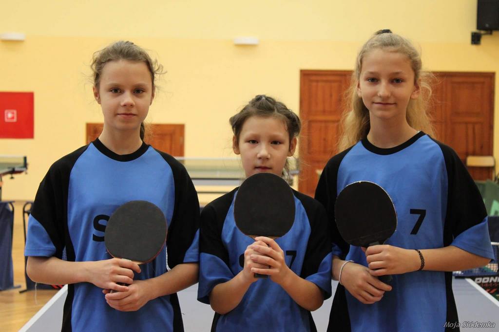 Na uwagę zasługuje fakt, że Mia była najmłodszą uczestniczką zawodów! Na co dzień trenuje tenisa stołowego pod okiem Pani Joanny Parchoć w UKS „Czternastka”. Gabrysia i Zosia choć trenują koszykówkę świetnie odnalazły się w roli tenisistek stołowych.