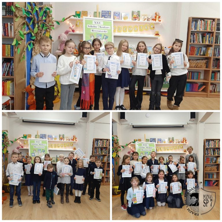 W poniedziałek, 2 lutego w bibliotece szkolnej odbyła się dwudziesta piąta edycja konkursu recytatorskiego dla uczniów klas 1-3. W finale wzięło udział 35 uczniów. Recytatorzy przygotowali interpretacje wierszy Juliana Tuwima, Jana Brzechwy, Danuty Wawiłow, Ludwika Jerzego Kerna, Doroty Gellner i innych autorów poezji dziecięcej.