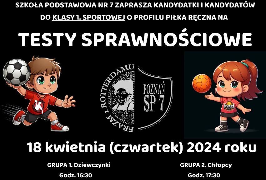 Zapraszamy kandydatki i kandydatów do 1 KLASY SPORTOWEJ o profilu piłka ręczna na próby sprawnościowe, które odbędą się w CZWARTEK 18 kwietnia 2024r.