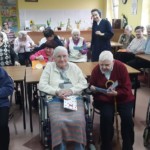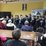 Klasa II b pojechała do Domu Pomocy Społecznej, aby ofiarować wszystkim Paniom : uśmiech, muzykę i laurki wykonane przez uczniów klas IIII. Dzieci pięknie zagrały koncert kolęd na flażoletach oraz zatańczyły dwa tańce ludowe do melodii kolęd. Na koniec z najlepszymi życzeniami zadedykowały piosenkę Uroki zimy. Wszystkie Panie z radością śpiewały kiedy dzieci grały.
