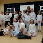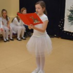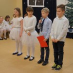 W programie koncertu znalazły się wiersze Emilii Waśniowskiej i Ludwika Jerzego Kerna oraz piosenki: Dziewczynka z Andersena i Kolęda na dzwonkach, które wykonała cała klasa. Były także popisy indywidualne. Maja zagrała na keyboardzie kolędę Cicha noc, Kuba na dzwonkach chromatycznych Lulajże Jezuniu a Konstancja Wśród nocnej ciszy na gitarze. Koncert zakończył taniec dziewczynek ze wstążkami do piosenki Leonarda Cohena pt. Hllelujah. Przepięknym akcentem końcowym tego układu tanecznego były unoszące się w górę białe balony.