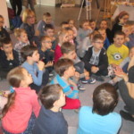 Grupa młodszych dzieci uczestniczyła w warsztatach literacko-plastycznych inspirowanych serią książek Przygoda w Raju. Na zajęciach dzieci poznały głównych bohaterów, Zlatka i Bezę oraz paletę barwnych mieszkańców osiedla RAJ, a następnie wykonały jego makietę.