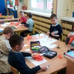 Uczniowie klasy 2 e mieli kolejne zajęcia z p. Joanną Krzyżanek, na których zmagali się z ortografią w zakresie pisowni wyrazów z ę, ą, om. Poznali gęś Walerkę, z którą ochoczo współpracowali. Każde dziecko wykonało swoją osobistą gąskę. Zabawa jak zwykle przednia, a umiejętności ortograficzne zostaną w głowach.