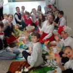 Po oficjalnej części, przygotowaliśmy Piknik majowy. Przed klasami uczniowie rozłożyli koce, przynieśli przygotowane smakołyki i ubrani w piknikowe, biało-czerwone bądź nawiązujące do XVIII wieku stroje, przystąpili do rozwiązywania quizu historycznego związanego z majowymi świętami.