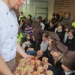 Uczniowie Siódemki zapragnęli zobaczyć, jak powstają tradycyjne rogale świętomarcińskie. Przed bramą muzeum czekała na nas pani w fartuchu, a piękny zapach zapraszał do środka. Pokaz odbywał się w renesansowej sali – sufit powstał 500 lat temu. Rogalowy Mistrz uczył nas poznańskiej gwary. Wspólnie z Mistrzem wypiekaliśmy rogale przy użyciu tradycyjnych narzędzi. Poznaliśmy recepturę i składniki rogali świętomarcińskich. Obejrzeliśmy też legendę o Marcinie. Na koniec oczywiście nastąpiła degustacja i prezentacja multimedialna o historii naszego miasta. Każdy z nas otrzymał certyfikat rogalowego czeladnika. Było pysznie i zabawnie.