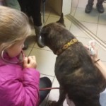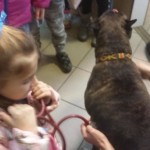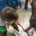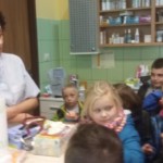 Chcieliśmy się z bliska przyjrzeć i dowiedzieć się na czym polega praca lekarza weterynarii. Pani doktor bardzo serdecznie nas przyjęła, oprowadziła po swoim miejscu pracy, pokazała całe wyposażenie oraz opowiedziała o tajnikach swojej pracy. Dzieci miały okazję zobaczyć jak wygląda aparat USG, turbina do czyszczenia zębów, aparat EKG . Każdy też osobiście mógł za pomocą stetoskopu posłuchać bicia serca pieska Pani doktor. Dzielny pacjent dzielnie znosił wszystkie niedogodności i pozwolił się zbadać dzieciom.