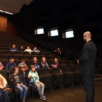 Tam zajęliśmy miejsca przeznaczone dla studentów i obejrzeliśmy na wielkim ekranie trzy filmiki. Obejrzane obrazy wywołały ciekawą dyskusję. Następnie mogliśmy podchodzić do centralnego miejsca na sali przeznaczonego dla wykładowcy i czytaliśmy przez mikrofony fragmenty wierszy Jana Brzechwy.