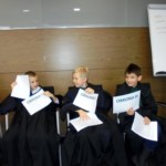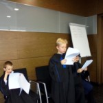 Później przeszliśmy do sali rozpraw. Przed wejściem na salę każdy dostał kartkę ze swoją rolą i zajął wyznaczone miejsce.
