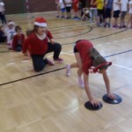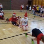 6 grudnia klasa 2e uczestniczyła w mikołajkowych zabawach sportowych. Uczniowie bawili się z koleżankami i kolegami z klasy 2h. Wykonywali śmieszne zadania, bardzo angażując się w tempo i jakość wykonania. Wszyscy doskonale się bawili, bo takie było założenie spotkania. Oczywiście, dzieci dołożyły starań, aby godnie uczcić dzień i nałożyli stroje sportowe w odpowiednim, czyli czerwonym kolorze. Kto mógł – dołożył do czerwonej odzieży stosowną czapkę mikołajkową.